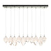 Five Large Chrysalis pendants and five Small Chrysalis pendants hung from a rectangular canopy. Each pendant may be individually adjusted for a custom look. Note, the upper canopy can will always be black while the canopy faceplate will match the selected finish.
