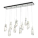 A linear multi-port fixture, the Luma 10-Light features two rows of large, stunning hand-cut and polished crystals that can be hung at the same level or staggered to suit the space. Customizable in length, as well, this graceful array of crystal-adorned lights creates a focal point in any room.