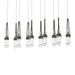 This linear Link multi-port fixture provides key options for customization—2 rows of clear glass may be aligned or staggered at the desired lengths from its rectangular canopy. Steel cuffs, handmade by Vermont artisans, embrace the clear glass of this Link 10-Light ceiling fixture. Metalwork is available in all standard finishes.
