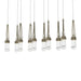 This linear Link multi-port fixture provides key options for customizationâ2 rows of clear glass may be aligned or staggered at the desired lengths from its rectangular canopy. Steel cuffs, handmade by Vermont artisans, embrace the clear glass of this Link 10-Light ceiling fixture. Metalwork is available in all standard finishes.
