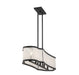The timeless beauty of the quatrefoil inspired the shape of this Parkside 5-light trestle. Its curving frame is adorned with slats of antique glass for a beautifully textured look that softens the glow. Matte black finish. Parkside is 12" in width, 42" in length and has an adjustable height ranging from 13.75" to 61.75". It uses 5 candelabra size bulbs of up to 60 watts per bulb (bulbs not included). Comes with eight 12" downrods and two 6" downrods.