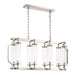 8-Light 40" Linear Chandelier with Clear Fluted Cylindrical Glass Shades within Decorative Polished Nickel Finished Metal Frame.