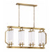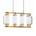 8-Light 40" Linear Chandelier with Clear Fluted Cylindrical Glass Shades within Decorative Aged Brass Finished Metal Frame.