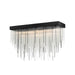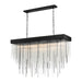 17-Light 48" Rectangular Crystal Dining Chandelier with Multi-Sized Clear Curved Crystal Stems combined with Satin Brushed Black Finished Stems within Sleek Metal Shade.