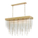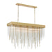 27-Light 60" Rectangular Crystal Dining Chandelier with Multi-Sized Clear Curved Crystal Stems combined with Solid Metal Stems. Refined Metal Details with our Premium Aged Brass Finish and Flush Mount Convertible.