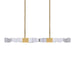 LED 49" 4-light hand formed and polished heavy gauge 3" x 3" linear crystal pendant, with deep edges and slants with each side unique. Refined iron metal details with our premium aged brass finish. Adjustable arms for unique designs and integrated Replaceable LED with 3CCT 3000K, 3500K and 4000K.