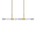 LED 49" 4-light hand formed and polished heavy gauge 2" x 2" linear crystal pendant, with deep edges and slants with each side unique. Refined iron metal details with our premium aged brass finish. Adjustable arms for unique designs and integrated Replaceable LED with 3CCT 3000K, 3500K and 4000K.