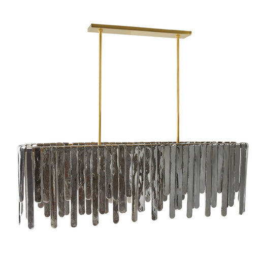 The linear island type chandelier from the Bianca collection exudes elegance with its cascading clear "Piastra" glass panels that shimmer like deli...