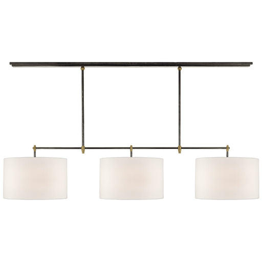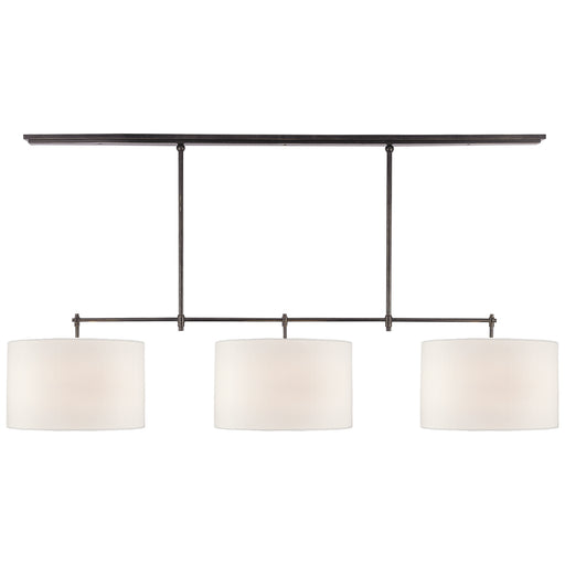 Details:Product Type: 3 Light BarFinish: BronzeShade: 16" x 16" x 10" LinenDesigner: Thomas O'BrienMeasurements:Width / Dia: 64.50"Height: 13.50"Ca...