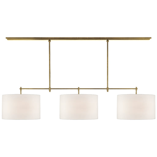 Details:Product Type: 3 Light BarFinish: Hand-Rubbed Antique BrassShade: 16" x 16" x 10" LinenDesigner: Thomas O'BrienMeasurements:Width / Dia: 64....