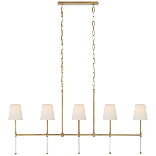 View full detailsVisual Comfort Signature SK 5055HAB-L Five Light Linear Chandelier, Hand-Rubbed Antique Brass