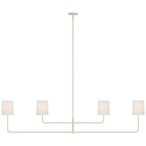 Details:Product Type: 4 Light +Finish: China WhiteShade: 5.5" x 6" x 7" LinenDesigner: Barbara BarryMeasurements:Width / Dia: 70.00"Height: 23.00"C...
