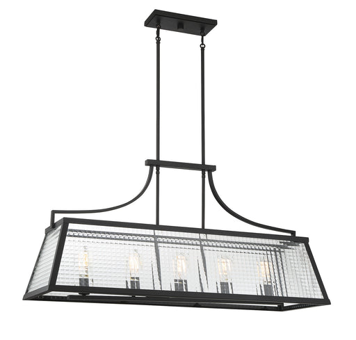Lantern-style lighting gets a stylish twist in the Elias 5-light linear pendant. Panes of clear ribbed glass create intriguing texture to go with t...