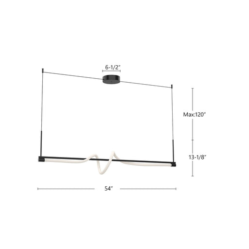 The Cursive linear pendant is a fluid signature of light, formed by an effortless acrylic form dancing around a center rod, suspended by two cables...