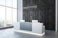 Architectural lines of polished chrome with embedded crystal inlay