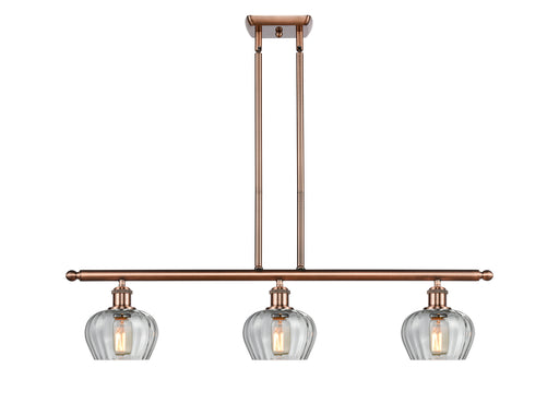 Fenton - 3 Light - 36 inch - Antique Copper - Clear Shade - Cord hung - Island LightDetails:Product Type: 3 Light BarFinish: Antique CopperShade: C...