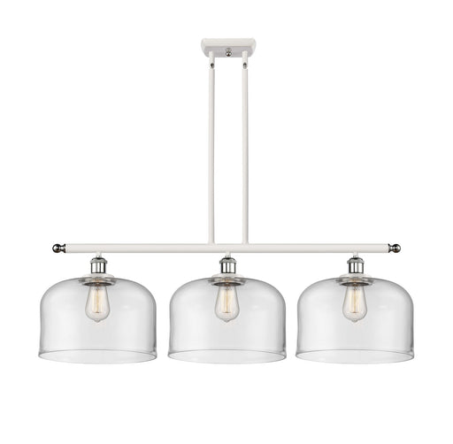 Bell - 3 Light - 36 inch - White Polished Chrome - Clear Shade - Stem Hung - Island LightDetails:Product Type: 3 Light BarFinish: White Polished Ch...