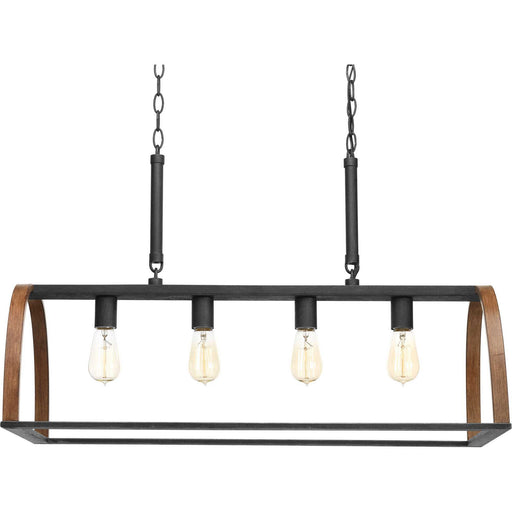 The nature-inspired, modern design of the Mast four-light island fuses faux wood accents and a duo of clear and etched glass shades to create an or...