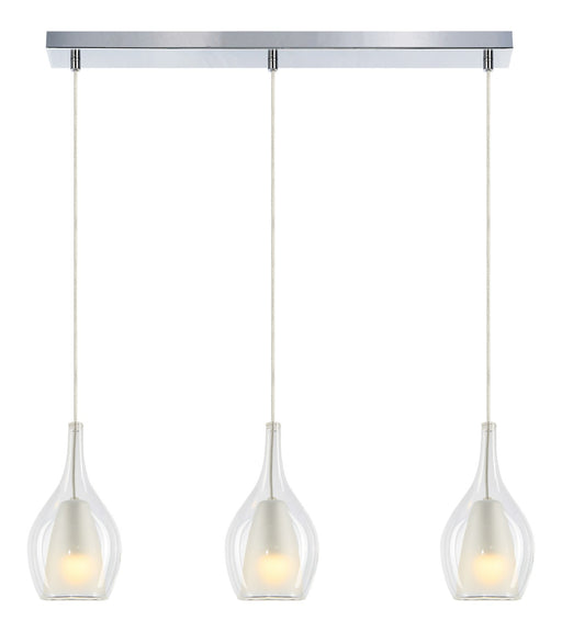 3 LT "JERICHO" 28"L RECTANGLE CANOPY CHROME+ CL GLASS PENDANT E26Details:Product Type: Multi-port/CascadeShade: Clear / White GlassMeasurements:Wir...