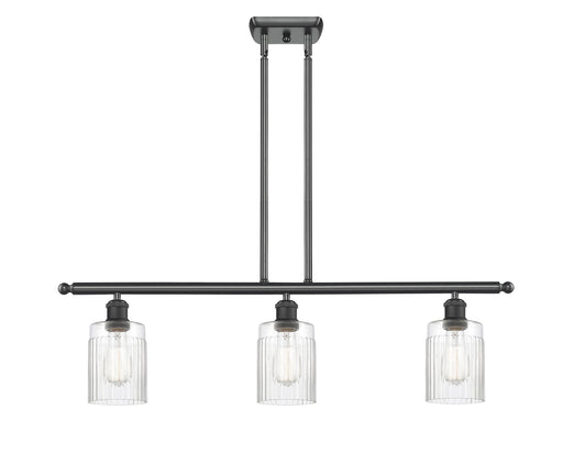 Conesus - 3 Light - 36 inch - Matte Black - Clear Crackle Shade - Cord hung - Island LightDetails:Product Type: 3 Light BarFinish: Matte BlackShade...