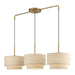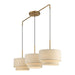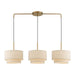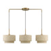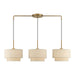 The Gladstone linear chandelier is both modern and versatile. The hand-crafted ash gray colored fabric hardback shades set a pleasant mood. The three-light double drum shades add character to this handsomely styled chandelier. Perfect fit for the dining room and kitchen. This sleek design is shown in an antique gold leaf finish.