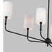 The Foxdale six light linear chandelier in Midnight Black encompasses the new traditional style with flawless execution. Refined and clean-lined, this classic silhouette is timeless without being stuffy. Perfectly transitional, this collection can be placed in any home regardless of style. Topped with White Linen Shades to complete the design.