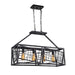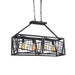 4-Light 33" Rectangular Cage Chandelier with Rustic Iron Metal Finish.