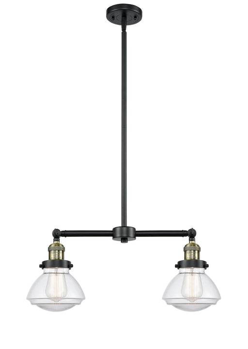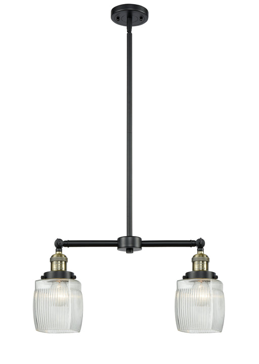 Colton - 2 Light - 22 inch - Black Antique Brass - Clear Halophane Shade - Stem Hung - Island LightDetails:Product Type: 2 Light BarFinish: Black A...