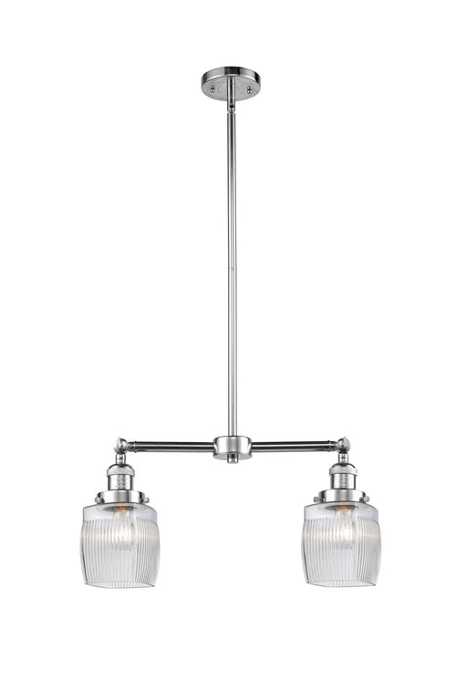 Colton - 2 Light - 22 inch - Polished Chrome - Clear Halophane Shade - Stem Hung - Island LightDetails:Product Type: 2 Light BarFinish: Polished Ch...