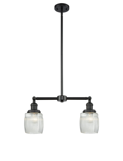 Colton - 2 Light - 22 inch - Oil Rubbed Bronze - Clear Halophane Shade - Stem Hung - Island LightDetails:Product Type: 2 Light BarFinish: Oil Rubbe...