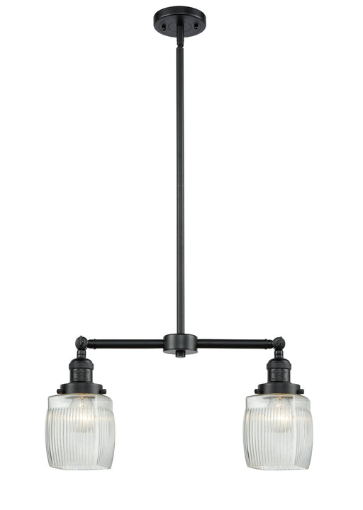 Colton - 2 Light - 22 inch - Matte Black - Clear Halophane Shade - Stem Hung - Island LightDetails:Product Type: 2 Light BarFinish: Matte BlackShad...