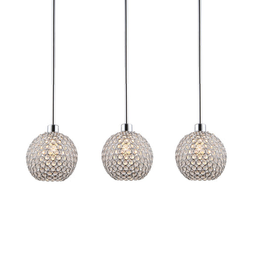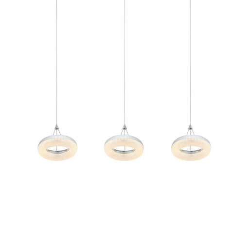 LED 36" Linear Ring Multi-Pendant with Crushed Crystal Diffusers and Polished Chrome Finish.Details:Product Type: 3 Light BarFinish: ChromeMeasurem...