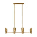 Designed by Christiane Lemieux, the Plivot six light linear chandelier in burnished brass is great for over long dining tables or kitchen islands. Drawing inspiration from 1940's and 50's French masters such as Mouille, Mategot, and Lacroix, this series features classic conical shades enhanced with elegantly curved fluidity. Related designs include medium, large and linear chandeliers and a single wall sconce, all available in Burnished Brass.