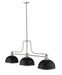 Big on personality, this black and brushed nickel finish three-light pendant borrows from an old time industrial theme. A fluid silhouette adds character to make this fixture an interesting, compelling addition to a focal point.