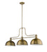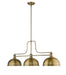 Vintage-inspired, this three-light ceiling light emits a warm glow. In a heritage brass finish, the rounded shades and streamlined curves add depth to any kitchen.