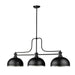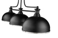 A subtle industrial vibe and matte black and brushed nickel finish pairing flatter this three-light billiards pendant from the Mélange collection by Z-Lite. A simple yet fluid silhouette blends matte black steel and matching dome-shaped steel shades complemented with brushed nickel banding, forming a perfectly balanced profile. This charming fixture is an ideal solution to brighten a kitchen island or sports room billiard space.