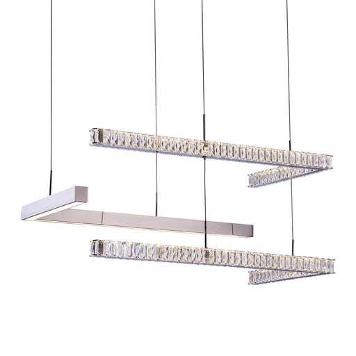3-Light LED 31" Contemporary Crystal Multi-Pendant with Three L-Shaped Clear Rectangular Faceted Crystal Pendants and Polished Chrome Metal Finish....