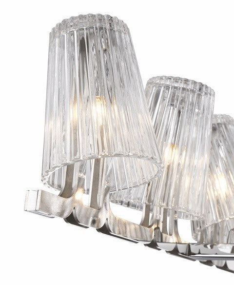 16-Light 44" Linear Glass Chandelier with Tapered Fluted Glass Shades resting atop Polished Chrome Decorative Frame.Details:Product Type: 4 Light +...