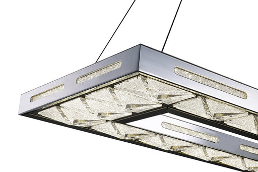 LED 36" Sleek Modern Chandelier with Crushed Crystal Diffusers within Rectangular Polished Chrome Shade.Details:Product Type: Open FrameFinish: Chr...