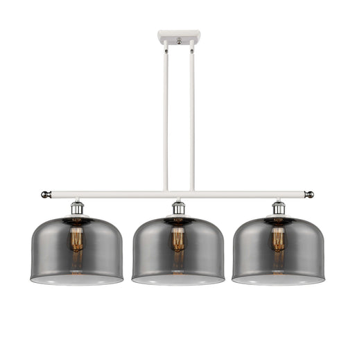 Bell - 3 Light - 36 inch - White Polished Chrome - Plated Smoke Shade - Stem Hung - Island LightDetails:Product Type: 3 Light BarFinish: White Poli...