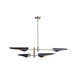 The Modern Renaissance collection is very stylish and trendy. The semi gloss black metal shades are painted in reflective white on the interior. The balance of the chandelier is plated in harvest brass. Multiple rods are included for desired height. 4 light model shown (6 light also available).