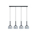 The Kali collection showcases a captivating design, featuring lightly smoked glassware suspended with sleek black wiring. Each glass element has an interior white bulb cover, adding a touch of subtlety to the lighting and creating a soft, ambient glow. Four light linear island chandelier shown.