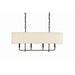 Long and narrow 4-light pendant in steel with dark bronze finish features light beige linen fabric oval shade.