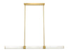 Brimming with warm sophistication, this modern linear pendant light sets the tone over a kitchen island or dining table. Its crisp silhouette pairs minimalist design with a sophisticated warm brass finish that's refined and rich for elegant contrast. A cylindrical diffuser is made of beautiful, natural alabaster sourced from Spain for impeccable quality and organic character. The slim rectangular canopy offers support and structure to the pendant, infusing simple sophistication to its silhouette. An LED light source is modern and energy efficient, delivering adaptable, adjustable brightness and light color, perfect for a variety of ambiances suited to every space.