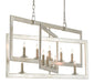 Our Middleton Rectangular Silver Chandelier has interlocking rectangles created by wrought-iron bands that are smartly designed. The frame of this chandelier perfects the illusion of diminishing perspective, its contemporary silver leaf finish making it gleam.