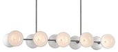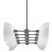 Simplicity is one of the strengths of the design of our Soba Rectangular Chandelier, which is made of wrought iron in a Hiroshi gray finish and white porcelain. The thin articulated stem of the gray chandelier extends down to hold its white, noodle-bowl-inspired shades. This design can easily swing from industrial chic to modern farmhouse style. We also offer the Soba in a round chandelier and in a wall sconce.