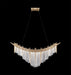 Inspired by the love of Jazz and the harmonious arrangement of musical notes, this Arpeggio pendant features panels of cascading glass fused together to create a chorus of visual delight. The collection emulates melody and movement, characterized by its multi-layered design of fused-glass panels, combining clear and colored glass to create a captivating, textured look. Color glass options feature textured glass panels masterfully layered and fused together in clear, or multi-tonal mix of clear, smoke, and bronze, with Midnight Steel or Soft Gold Leaf finish options.