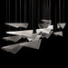 Our Volo Collection captures the quiet momentum of flight through cascading geometric forms and customizable, suspended compositions. Handcrafted studio glass—available in clear, smoke, or amber with hammered or linear textures—evokes the interplay of wind, light, and elevation with striking elegance."