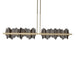 The Hildene Pendant features metal plates crafted into dramatic hills and valleys that are illuminated by LED lightguides encased in its central frame. A large, linear pendant suspended by two central rods, the Hildene is offered with a two-toned finish option, with the canopy/rods/frame in one finish, and the metal plates in a choice of accent colors. Also available as a smaller pendant, a large circular pendant, and a wall sconce.