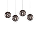 Linear metal multi-pendant fixture with four sphere shaped pendants with laser cut organic shaped openings which illuminate unique light effects and shadows around the surrounding area when lit. Inside each pendant is a frosted acrylic diffuser which distributes the light evenly throughout the whole fixture. Available in bronze or white finishes with a maximum length 120" adjustable wire and is provided with our powerful 120V AC LED technology, 32W, fully dimmable. This family includes three different sizes of pendants, variety of multi-pendant options and lamp`s, see series for full details.